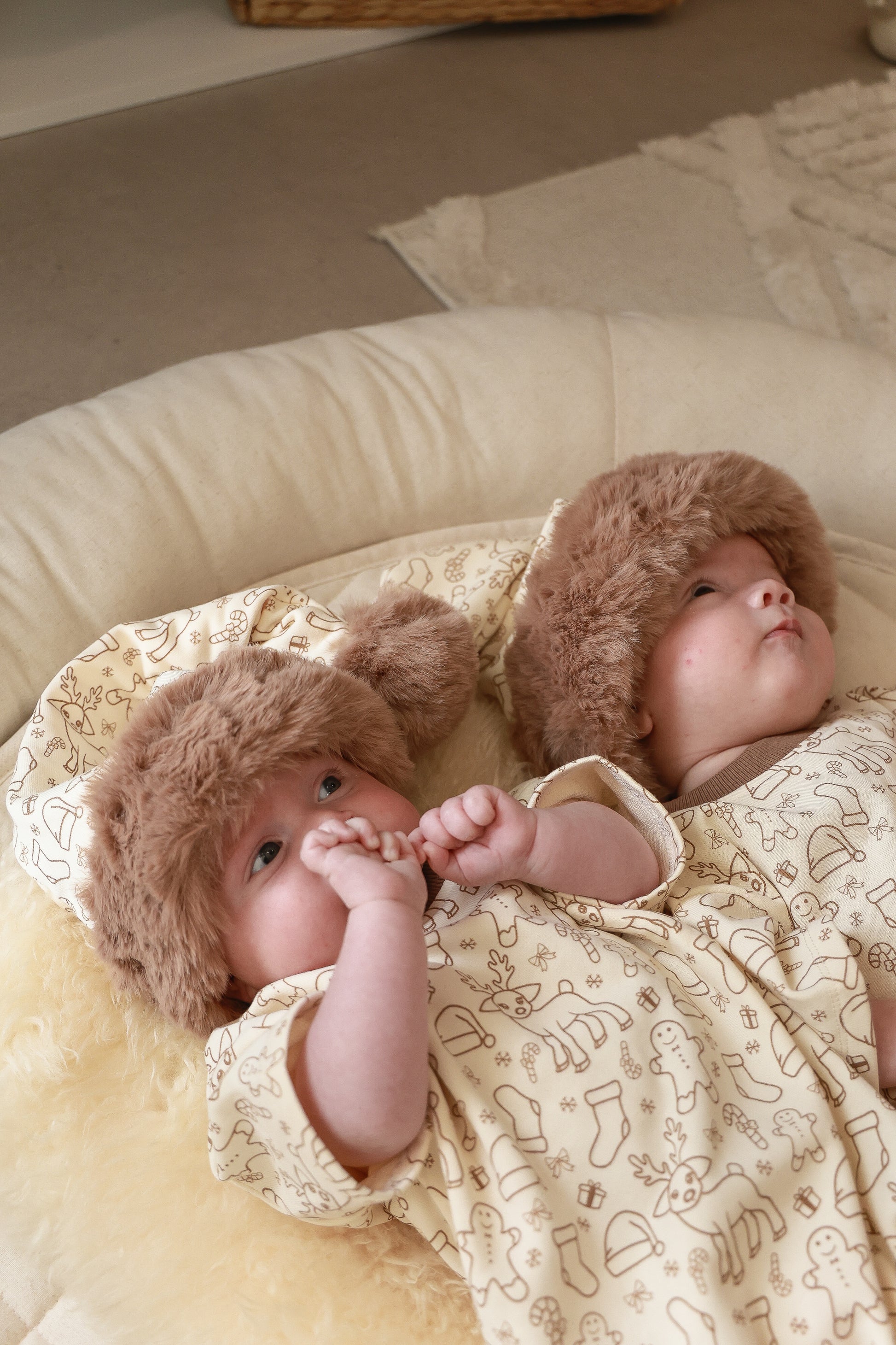 Představujeme naši vánoční čepici s veselým potiskem na míru – útulný sváteční nezbytný kousek pro celou rodinu! Tato vánoční čepice, která je k dispozici ve velikostech od miminek až po dospělé, se vyznačuje okouzlujícím veselým potiskem v dubové barvě, plyšovou krémově béžovou čelenkou a bambulkou pro hřejivý a nadčasový vzhled. Je navržena tak, aby dokonale ladila s naší vánoční kolekcí, a je perfektním doplňkem pro sladěné rodinné fotografie nebo jako samostatný kus oblečení, který vnese sváteční náladu na jakékoli setkání.