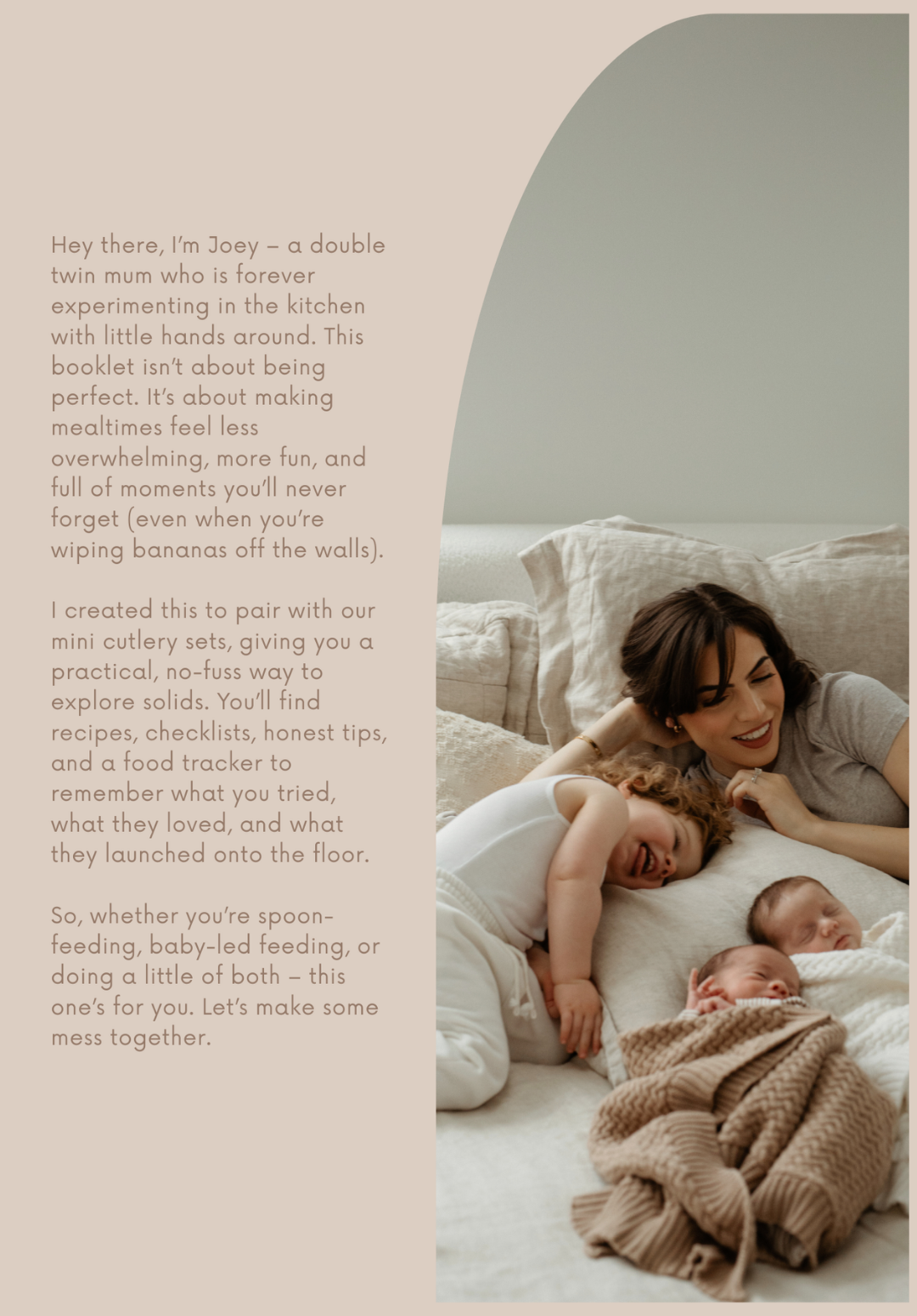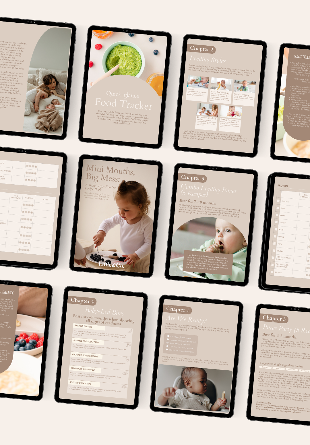 ✔️ E-kniha Mini Mouths, Big Mess – postupný průvodce zaváděním pevné stravy s recepty, tipy na krmení a kontrolními seznamy