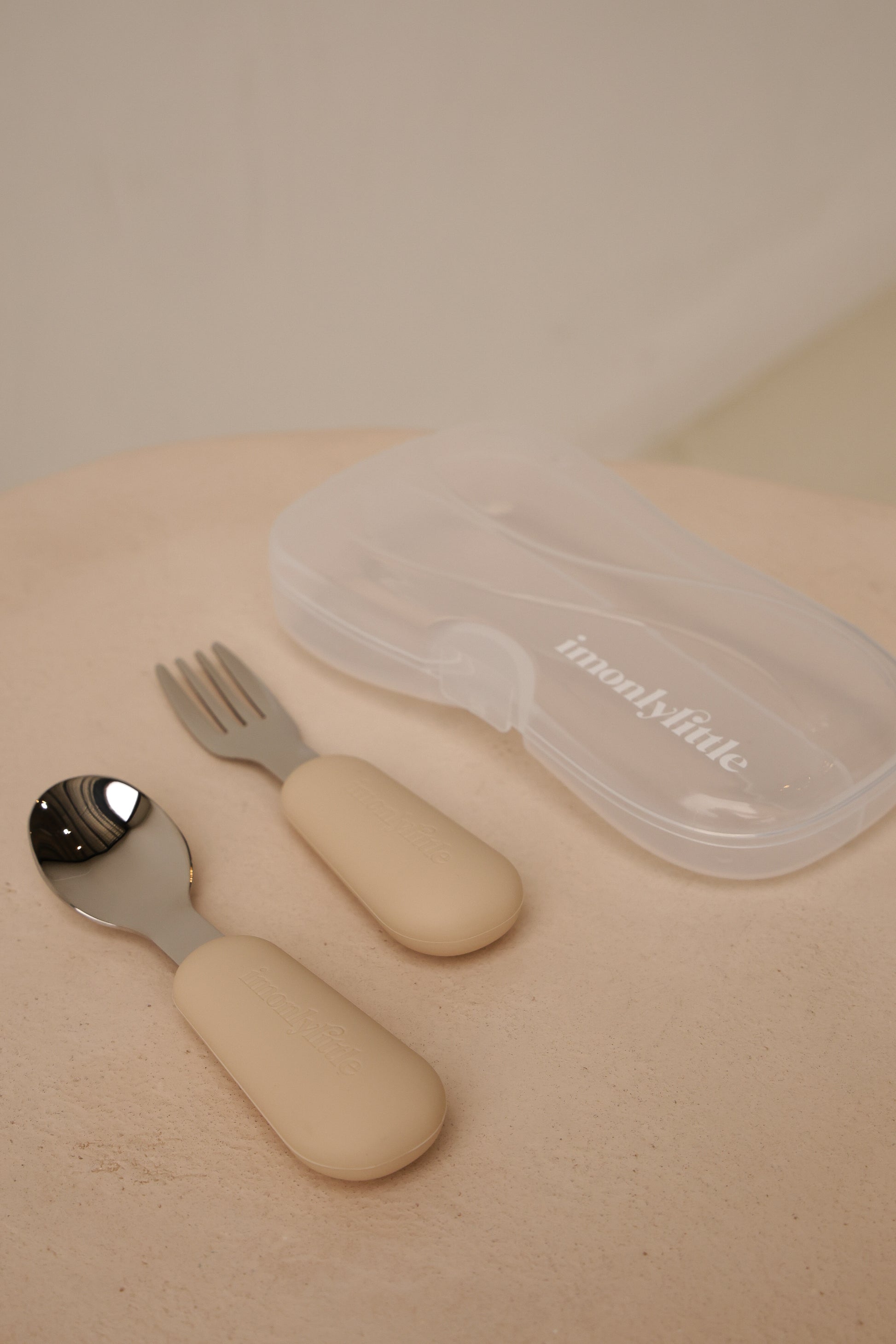 Už žádné plastové příbory, které se skončí kousat nebo praskat. Naše jsou bezpečné, odolné, vhodné do myčky a navržené pro malé ručičky, které se učí jíst. K dispozici v jemné slonovinové nebo teplé béžové barvě.