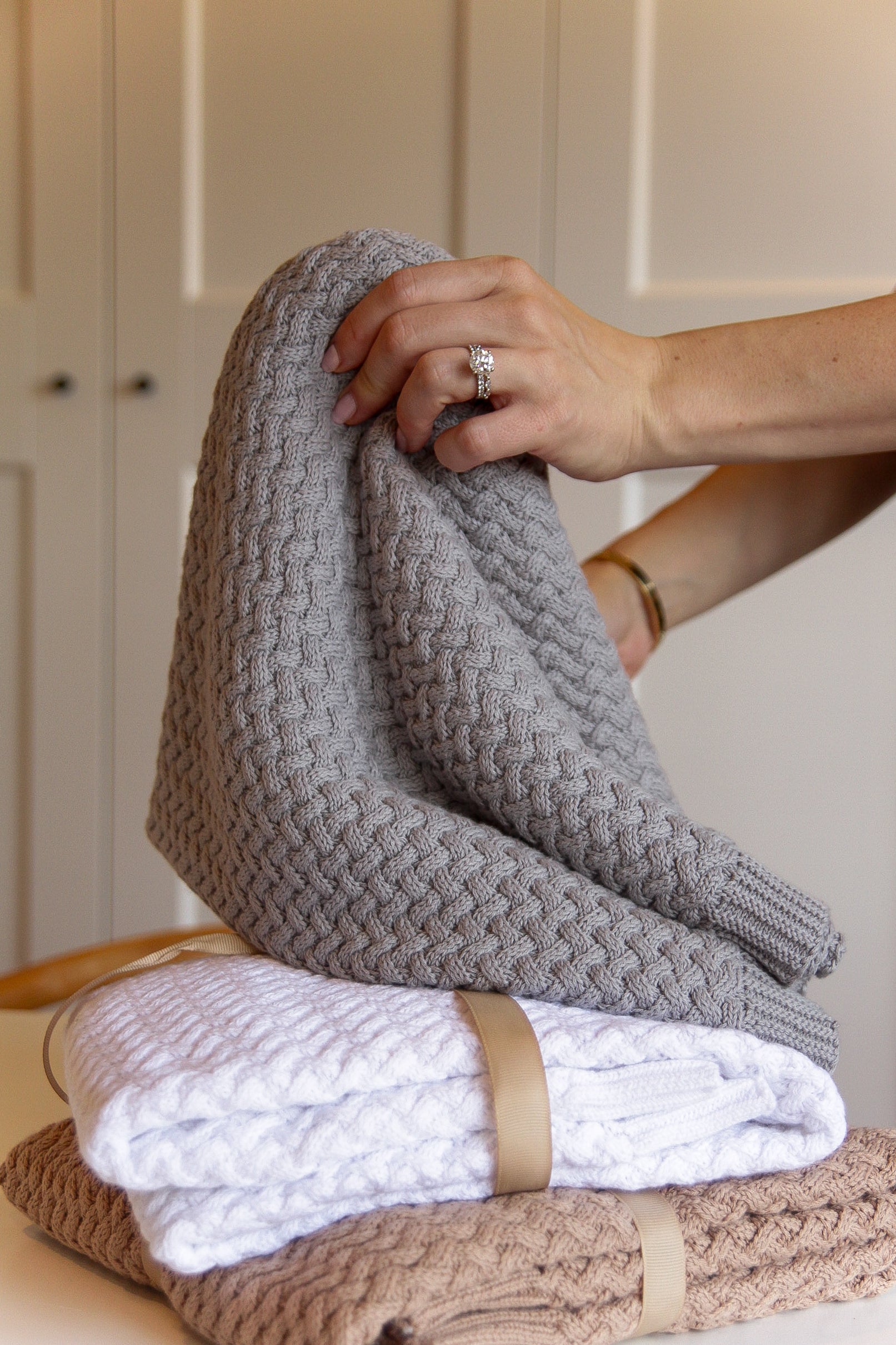 I purchased the organic cotton knit blanket in warm brown and was so impressed by the softness and quality of it. Bubbies haven’t arrived yet but I know they’ll be so cozy in this when they do.