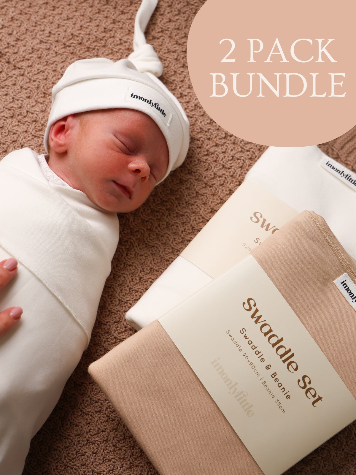 Wrap your little one in warmth, comfort, and timeless style with our Newborn Swaddle Duo Set. This exclusive bundle includes two beautifully coordinated swaddle sets — offered together at a special price. Each set includes a 90 cm x 90 cm swaddle and a matching 35 cm stretch beanie, thoughtfully designed to provide just the right amount of stretch for a secure and soothing wrap. Perfect for everyday use, gifting, or preparing for your baby’s arrival, this neutral-toned duo blends simplicity with softness to keep your newborn cozy and content.