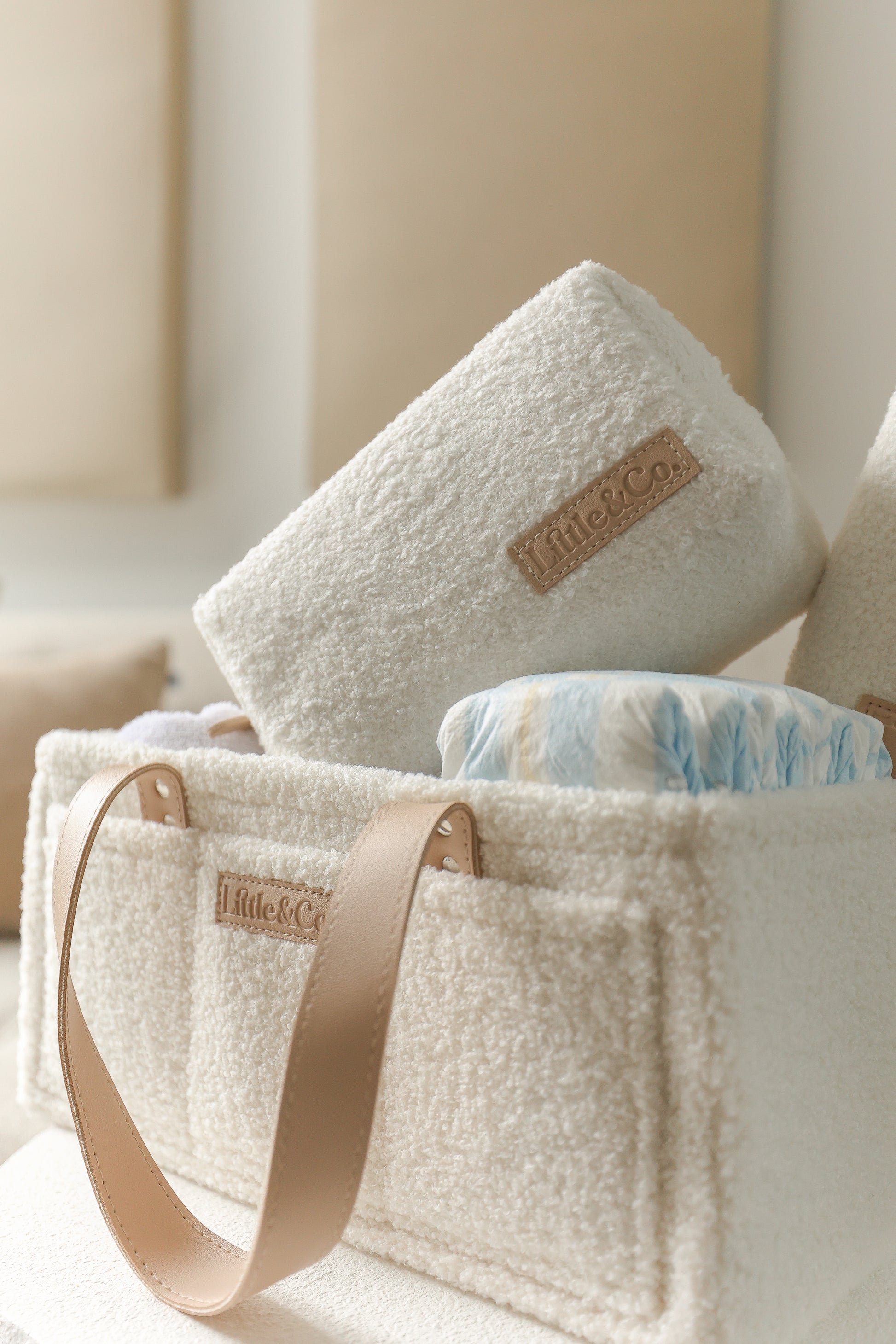 Made from cosy teddy fabric with cream vegan leather accents and a matching logo, this bundle combines functionality with understated elegance. Whether you're at home or out and about, it's a must-have for new parents and a beautiful gift for a baby shower.