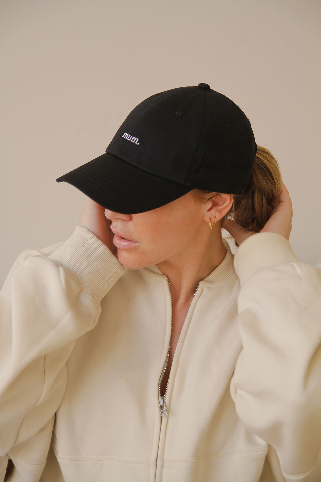 Crafted with care, this hat combines style and comfort, offering a casual and effortless look as you run around taking care of your little ones. Whether you're dashing off on errands, heading to the park, or just need a quick hair fix, our "mum." hat has you covered. Get yours today through our convenient pre-order option and embrace the practicality and chic simplicity that this hat brings to your busy life.