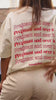 Check out our new cheeky oversize tee! Designed in Australia, this custom t-shirt is crafted from 100% cotton with a weighty 230gsm fabric that feels luxuriously soft and durable. Featuring on the back side of tee, the playful repeated quote "Pregnant and Over It". Available in 2 colours: a bold burnt orange digital print on an ivory tee and second, with a cherry print on a grey tee.